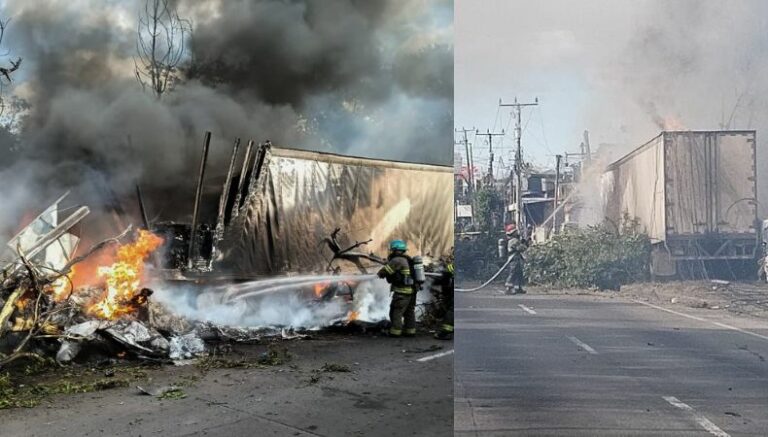 El cabezal de la rastra quedó calcinado y además se reportaron otros vehículos afectados. Elementos del Cuerpo de Bomberos y socorristas trabajaron en labores de liquidación y enfriamiento para controlar las llamas y evitar mayores daños.