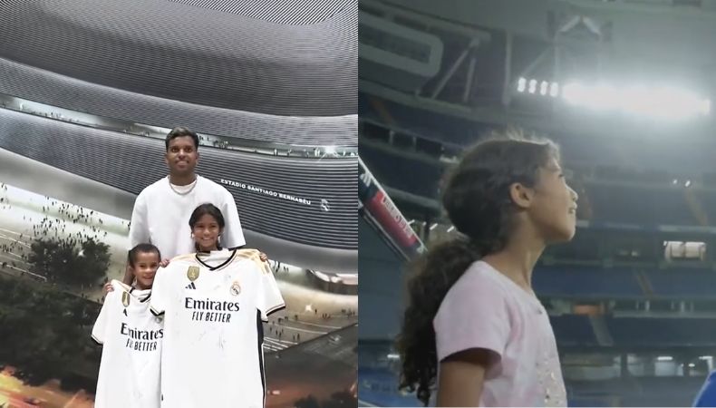 De igual manera, la niña ingresó a los vestuarios y saltó al césped del recinto madridista.