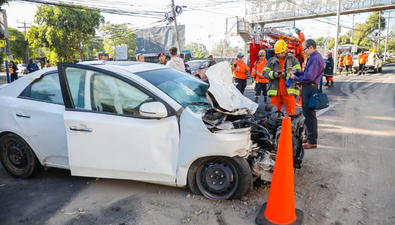 Desde las primeras horas, equipos Protección Civil y Comandos de Salvamento atendieron un aparatoso accidente de tránsito reportado en la alameda Manuel Enrique Araujo y calle Las Mercedes en San Salvador.