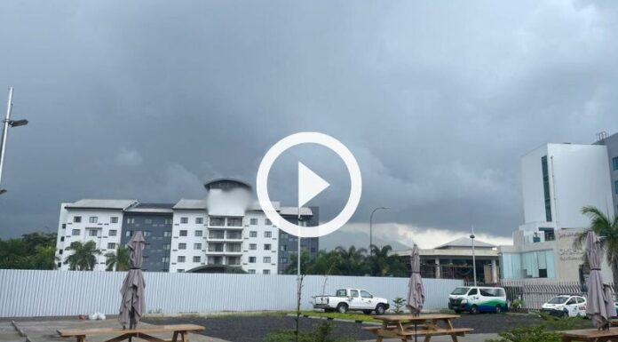Te mostramos cuál es el panorama desde el Foro 4 de TCS, en Antiguo Cuscatlán. Una leve intensidad de lluvia ha caído en estas horas de la tarde.