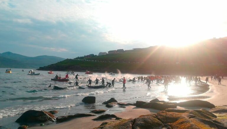 Según, la prensa internacional, esa actividad, comenzó a inicios de junio y durante los primeros quince días del mismo mes se contabiliza la muerte de más de 500 ballenas o calderón piloto. Es una especie de delfín de nombre científico Globicephala melas.