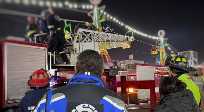 Elementos del Cuerpo de Bomberos en Querétaro, México, rescataron a dos menores de edad, luego de quedar atrapados en un juego mecánico en la Feria Internacional Ganadera de Querétaro.