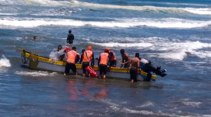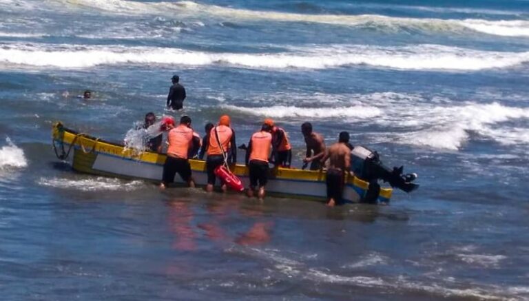 La emergencia ocurrió luego de que la lancha volcara por el fuerte oleaje. El auxilio estuvo a cargo de la Unidad de Guardavidas de Protección Civil.