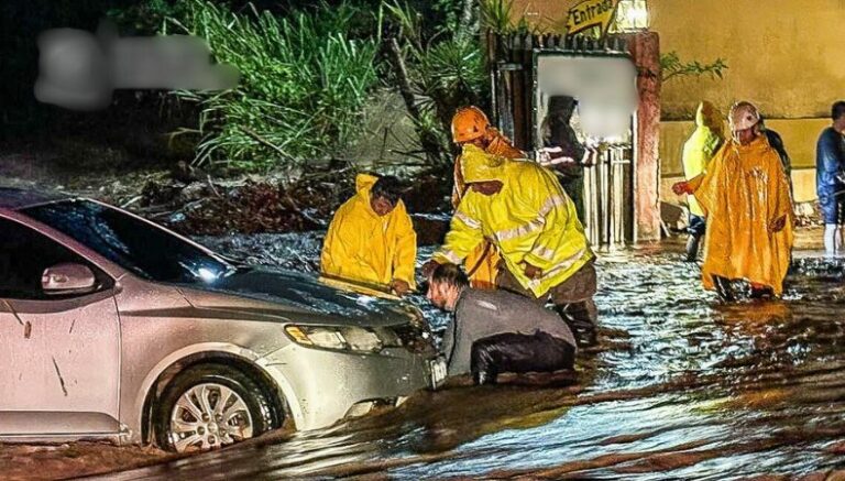 Ante este panorama, la Secretaría de Prensa, en su cuenta de X, informó que elementos de Cuerpo de Bomberos rescató a varias personas que quedaron atrapadas dentro de sus vehículos y estaban a punto de ser arrastradas por las fuertes corrientes de agua, específicamente en la entrada de un turicentro de Ahuachapán Centro.