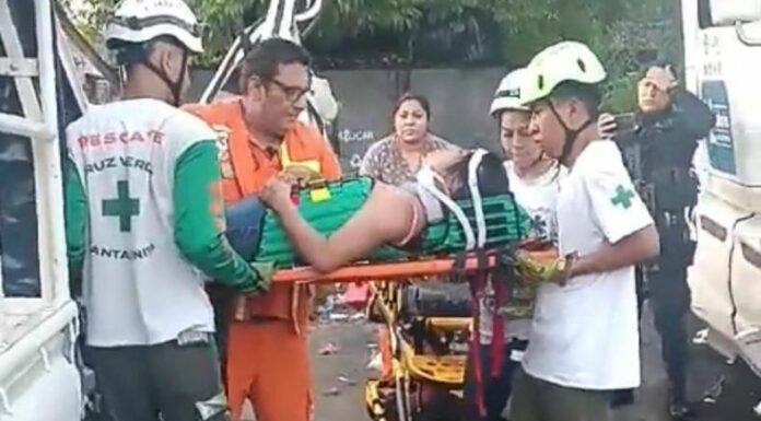 En horas de la mañana de este día, Cruz Verde Salvadoreña rescató a una mujer que quedó atrapada entre los hierros retorcidos de un camión, luego de sufrir un accidente de tránsito en la avenida 29 de agosto, San Salvador.