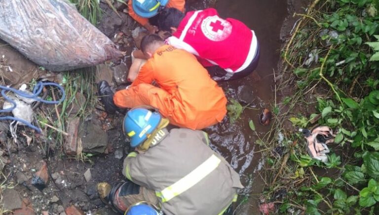 Rescatan a una persona adulta mayor que cayó en una quebrada, ubicada la colonia Milagro, departamento de Usulután.