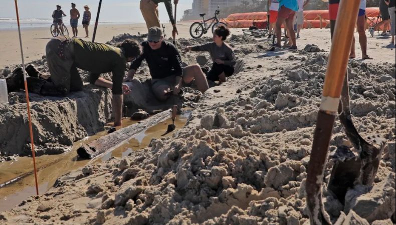 Los restos de un barco que pueden ser del siglo XIX fueron encontrados en la playa de Daytona Beach, Florida.