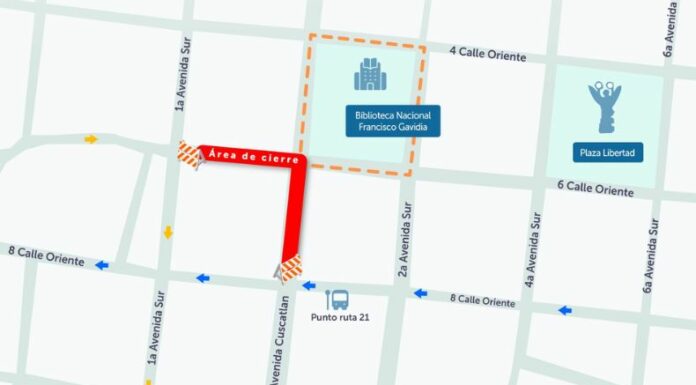 Las autoridades han comunicado que el paso vehicular se restringirá entre la 6 calle Oriente y Avenida Cuscatlán en San Salvador. Le recomendamos buscar vías alternas si transitará por la zona. Las calles que estarán habilitadas en los alrededores son la 1a Avenida Sur, la octava calle oriente y la 2a Avenida Sur.