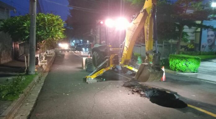En horas de la noche, equipo técnicos identificaron la formación de una cárcava en calle Loma Linda, entre calle número 2 y redondel Brasil, San Salvador.