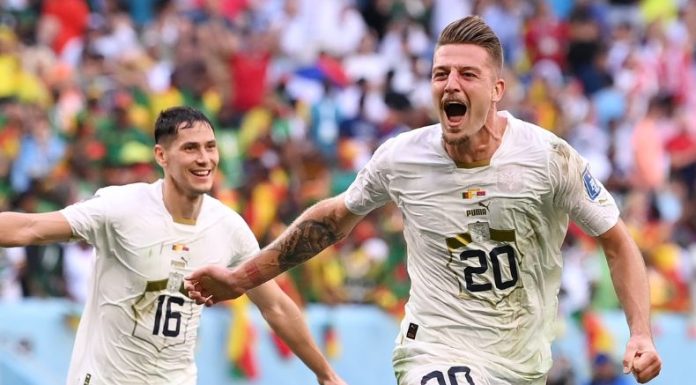 Pero los serbios no se tardaron mucho en responder y en el 45+1 Pavlovic logró cabecear un balón proveniente de un tiro libre y con ello venció al portero camerunés y dos minutos después Milinkovic-Savic fue capaz de anotar el tanto que le daba la ventaja parcial a Serbia y se iba ganando al medio tiempo.