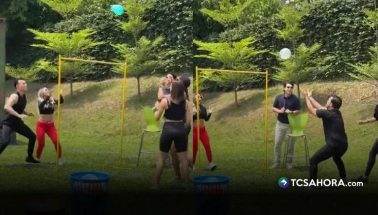 La dinámica consistió en un voleibol con vejigas llenas de agua, donde ambos equipos llegaron con ropa deportiva listos para el enfrentamiento.