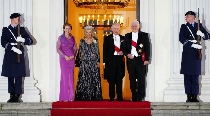 El presidente alemán, Frank Steinmeier, que acompañará al monarca durante todo su viaje, calificó la visita del rey como un importante gesto europeo. Carlos III y su esposa saludaron al público que asistió al acto, algo que habían pedido de manera expresa. La policía limitó la cantidad de asistentes a 1,500, por motivos de seguridad.