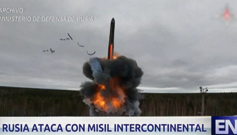 Las fuerzas aéreas de Kiev, capital de Ucrania, señalaron que Rusia lanzó un misil balístico intercontinental. Se trata del arma diseñada para ejecutar ataques nucleares a miles de kilómetros de distancia. Unas horas después, el presidente ruso, confirmó el ataque contra esa nación, afirmando que Moscú “tiene derecho” a atacar a países que permiten a Kiev usar sus misiles para golpear territorio ruso.