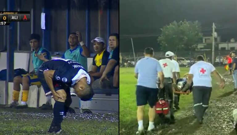 La alarma se activó a los 52 minutos, cuando Elvis Claros frenó la llegada del delantero en el momento que ambos pasaban por una zona del campo bastante dañada, cercano a los banquillos.