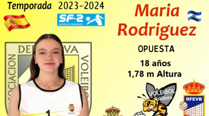 «Incorporamos a nuestra plantilla a la jugadora internacional Sub19 de El Salvador, jugando actualmente con la absoluta de su país, para continuar reforzando el equipo. María Rodríguez viene a España para continuar su progresión como jugadora, contando con la confianza del seleccionador y equipo técnico Salvadoreño, que harán un seguimiento continuado de su desempeño esta temporada en Voleibol Astillero», destaca el post.