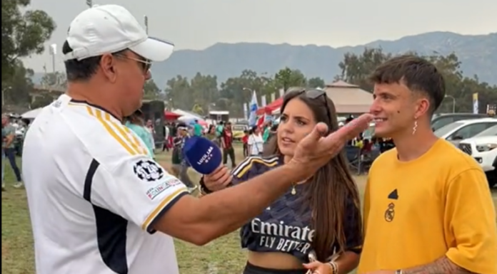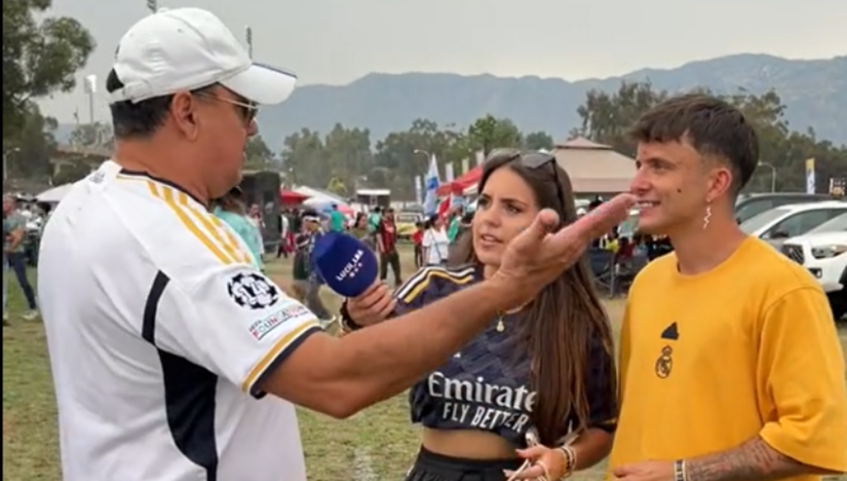 En el video se logra ver una curiosa pancarta que rápidamente llamó la atención de los dos españoles, dicha pancarta se suele ver mucho en calcomanías al rededor del país. Fue ahí donde lo entrevistaron los dos jóvenes preguntándole de donde venía, «Soy de El Salvador», dijo muy feliz recalcando que era la tierra del Mágico González.