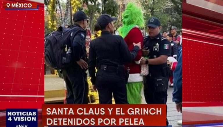Santa Claus y el Grinch se pelearon en una plaza de Aguas Calientes, en México. El suceso ocurrió luego de que las personas disfrazadas de estos personajes se enfrentaran por el espacio para que el público pudiera tomarse fotos con cada uno. Por tanto, las autoridades intervinieron para que no pasara a más y los detuvieron.
