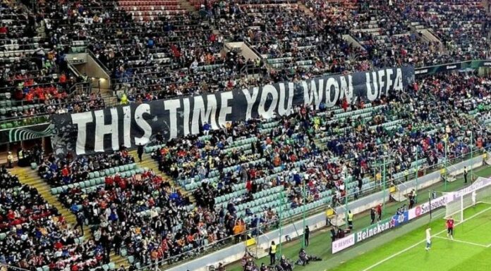 Sin embargo, dicha afición intentó engañar a las autoridades, colocando un letrero que decía “Por esta vez ganaste UEFA”, haciendo alusión a que habían acatado la sanción que se les interpuso.