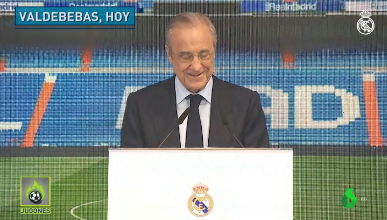 Posteriormente, el presidente del equipo merengue saltó a la tarima y no se pudo contener la risa por la extensa duración del highlight.