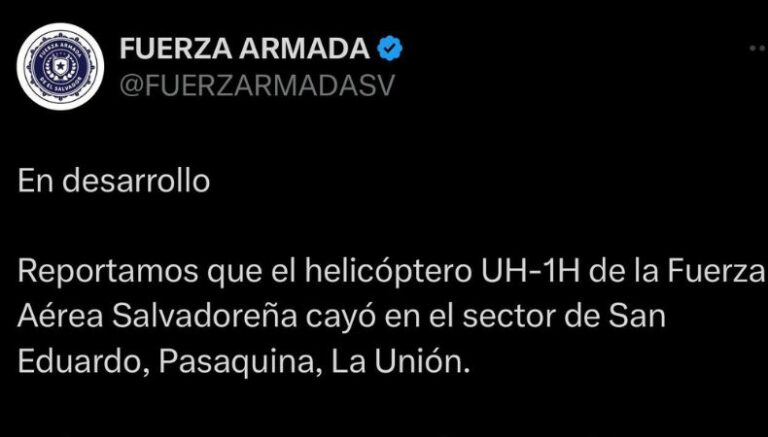 Unas horas más tarde, por medio de la cuenta X de la Fuerza Armada, confirmó la muerte de todos los tripulantes de la aeronave que se estrelló en Pasaquina, La Unión.