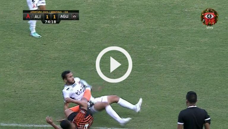 Alex Larín dejó a Águila con un hombre menos luego de protagonizar una jugada mal intencionada al minuto 70′. Cerca de la línea de cal, el «Cacho» recibió una entrada por detrás de Marvin Monterroza, pero el defensa negronaranja dejó la pierna y casi le hace daño al centrocampista albo.