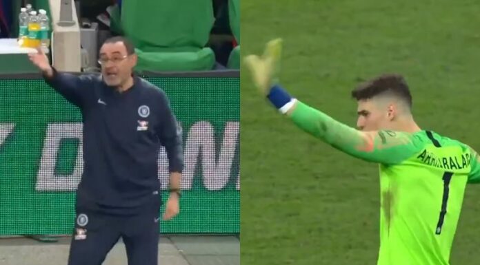 El duelo se fue al tiempo extra por el 0-0 en el marcador. Al ver unos posibles gestos de dolor en Kepa, el estratega Mauricio Sarri ordenó su sustitución por Willy Caballero. A pesar de ello, el vasco se negó a salir del rectángulo verde.