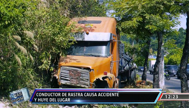 Según el reporte de las autoridades, el conductor de la rastra huyó del lugar. El accidente ocurrió en el km 7 de la autopista a Comalapa.