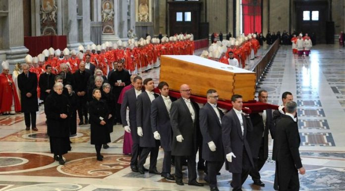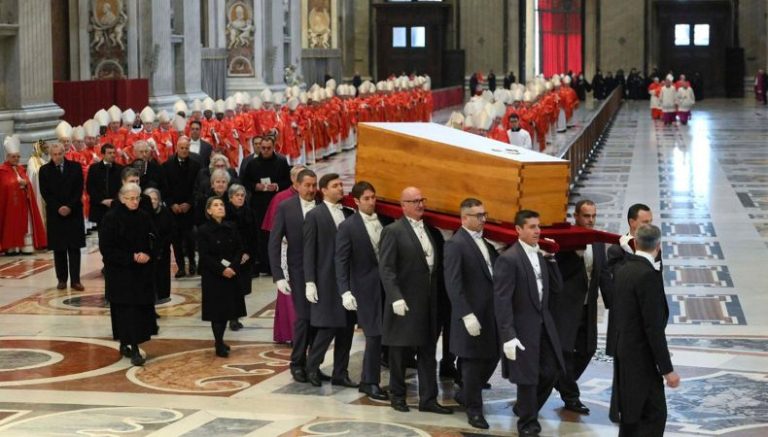 Luego de que el Papa Francisco realizara la misa funeral en la Plaza de San Pedro, el ataúd fue trasladado a las grutas vaticanas, ubicadas debajo de la basílica de San Pedro.