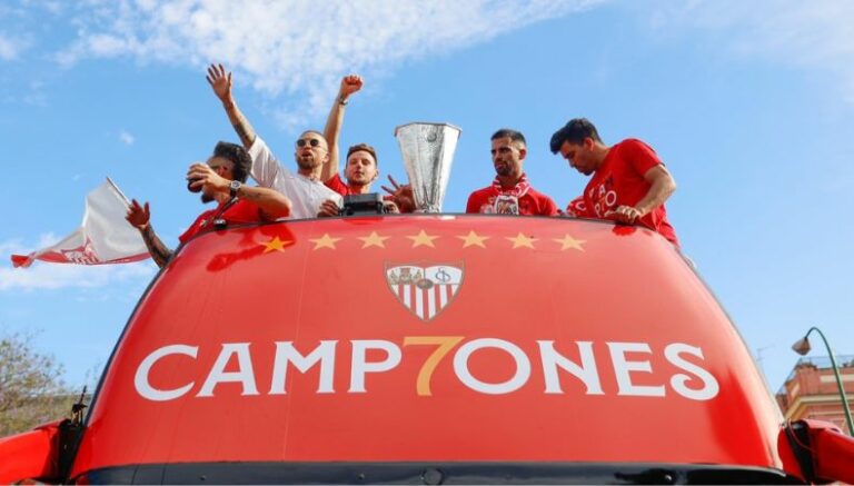 Posteriormente, la plantilla hizo un recorrido por los sitios turísticos más emblemáticos de la ciudad. La celebración se trasladó a la plaza Puerta de Jerez, la catedral y el ayuntamiento. En este último, miembros rojiblancos tomaron el micrófono ante la presencia de un mar de hinchas.