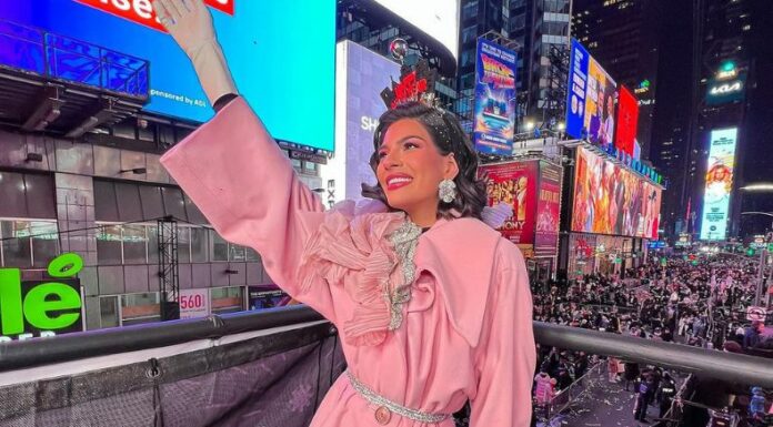 No obstante, para despedir el 2023, no escatimó en utilizar un atuendo del diseñador, Rubin Singer, el mismo diseñador que creó los trajes de baño para la 72a edición del certamen de belleza, quien le ayudó a lucir un look muy femenino, con brillo sutil y adecuado al ambiente que se vivió en la ciudad de Nueva York.