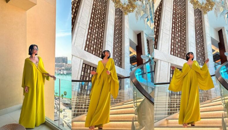 Posando para las fotografías, dejó a todos maravillados por su inigualable belleza y carisma desbordante. En su cuenta de Instagram publicó unas historias de su llegada a la capital de Qatar, donde se le veía luciendo con un elegante enterizo verde lima del reconocido diseñador venezolano, Ángel Sánchez.