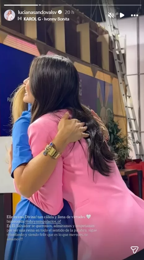 Luciana también compartió un video del momento en que abrazó a Sheynnis, acompañado de un mensaje: “Ella es una Divina! tan cálida y llena de virtudes. Bienvenida @sheynnispalacios_of. En El Salvador te queremos, admiramos y respetamos por ser una reina en todo el sentido de la palabra”.