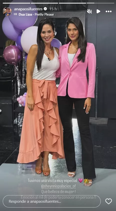 Por su parte, Ana Pao publicó una fotografía junto a la Miss Universo y expresó: “Tuvimos una visita muy especial. Qué belleza de mujer. Emoción a mil de poderla conocer en persona”.