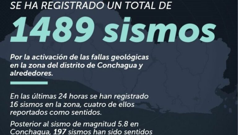 Asimismo, durante las últimas 24 horas, se han registrado 16 sismos en la zona, de los cuales, cuatro reportados como sentidos. Esta situación se debe a la activación de las fallas geológicas en el distrito de Conchagua y los alrededores.