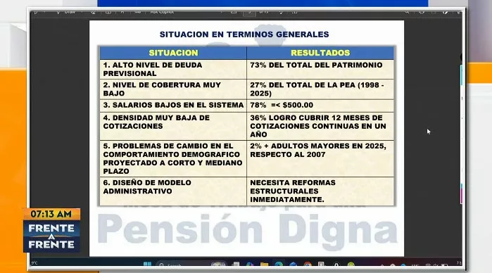 Y es que la situación actual en términos generales, según el vocero de la Mesa por una Pensión Digna, hay un 73 % del total del patrimonio comprometido en deuda