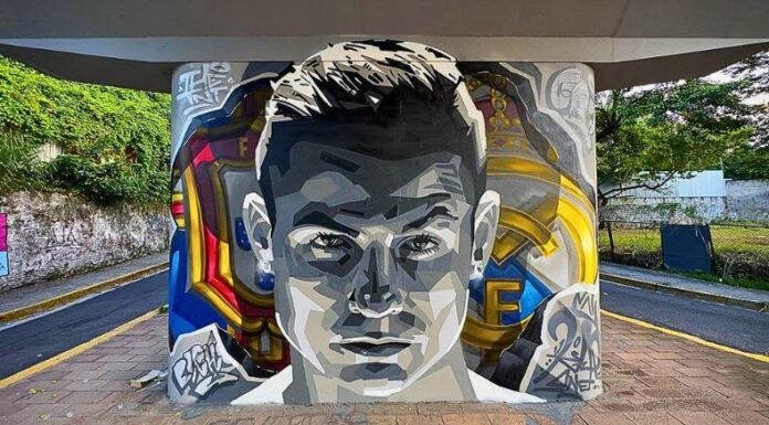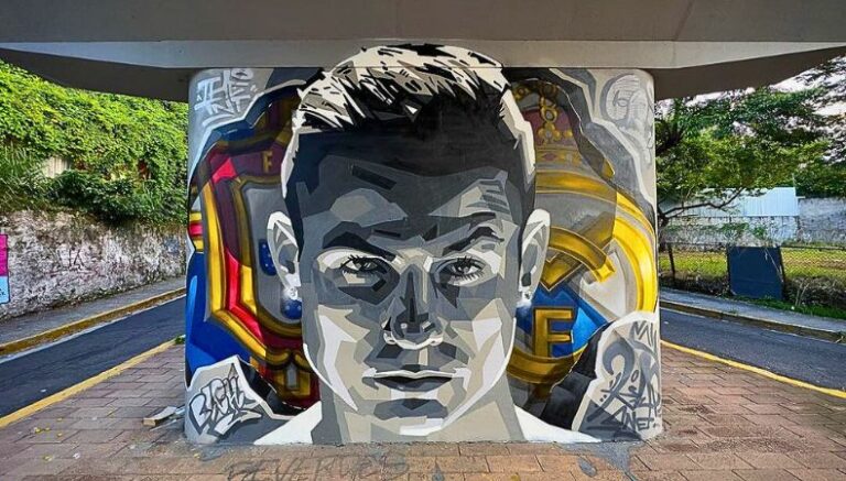 El gran mural de Cristiano Ronaldo se puede apreciar en las cercanías del estadio “Mágico González, y es obra de Efrain Orellana, quien firma en sus obras como “TNT”, compartiendo el arte que lleva por dentro.
