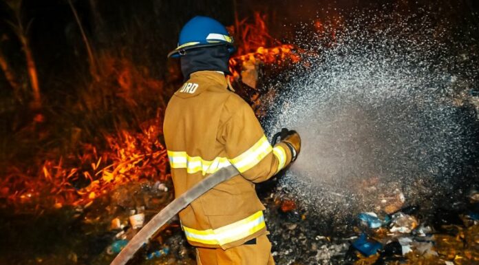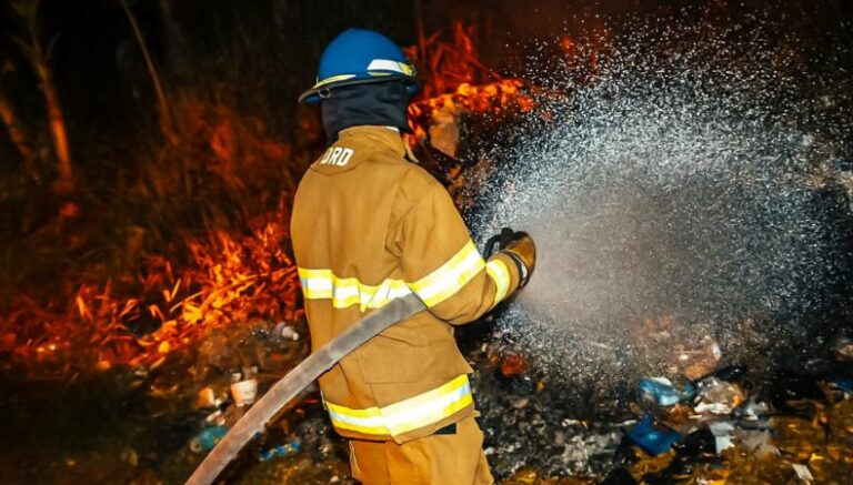En horas de la madrugada de este día, 14 de noviembre, Cuerpo de Bomberos extinguió un incendio en un predio baldío con abundante basura y desechos en el Km 7, bulevar del Ejército, Soyapango.