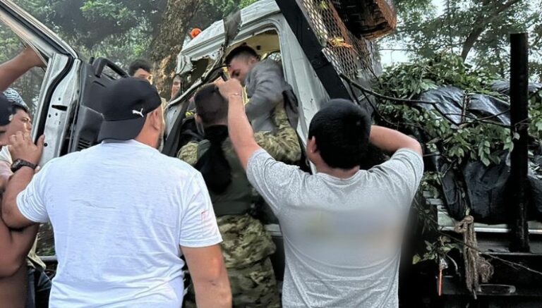 En horas de la mañana de este día 2 de junio, elementos de la Fuerza Armada de El Salvador (FAES) auxiliaron a un hombre quien se encontraba atrapado dentro de la cabina de un camión, al sufrir un accidente de tránsito en el kilómetro 44 de la carretera Panamericana, en Santo Domingo, San Vicente.