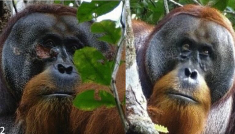 Como en el “Planeta de los Simios”: Científicos dieron a conocer hace poco que descubrieron por primera vez a un orangután curándose una herida.