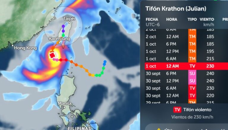 Este fenómeno natural, el supertifón Krathon, sigue siendo una gran amenaza en su recorrido por el océano Pacífico; hasta el momento, ya afectó a varias islas en Filipinas.