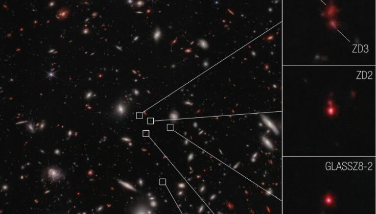 En la nota oficial en el sitio de la NASA, la institución cuenta que las estructuras se formaron cerca de 650 millones de años luego del Big Bang, o sea, poco después del nacimiento del Universo conocido.