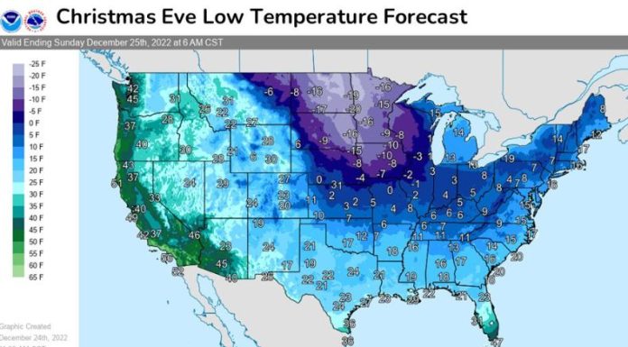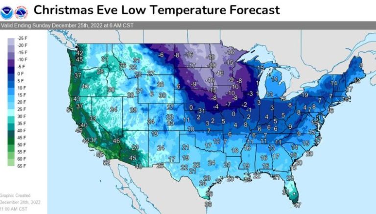 De igual manera, el Centro publicó el flujo de las temperaturas gélidas en todo el territorio norteamericano.