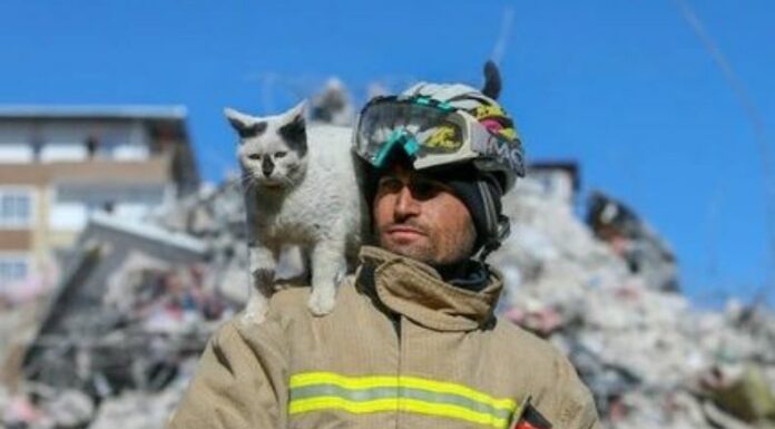 Todo esto ocurrió hace algunos días, cuando Ali Cakas, voluntario del equipo de rescate en Turquía, encontró al pequeño felino dentro de los escombros. Por fortuna, el animalito no presentaba heridas de consideración, y fue atendido por los veterinarios del lugar.