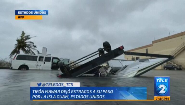 El paso del tifón Mawar por la Isla de Guam, Estados Unidos en el Pacífico occidental, ha dejado árboles caídos, vehículos dañados y calles inundadas. Hasta el momento no reportan víctimas mortales. Los meteorólogos dijeron que Mawar había azotado el territorio con vientos de 140 millas por hora cuando el ojo de la tormenta paso justo al norte de la isla.