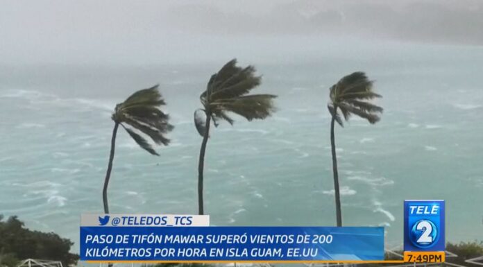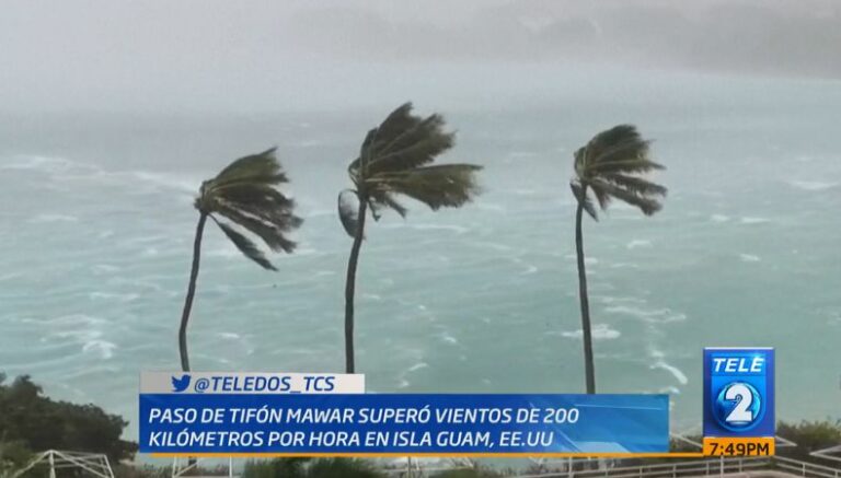El paso del tifón Mawar en la madrugada de ese miércoles 24 de mayo sobre la Isla de Guam en Estados Unidos ha causado varios daños, un informe del Servicio Meteorológico Nacional señaló que los vientos máximos de Mawar superaban los 200 kilómetros por hora.