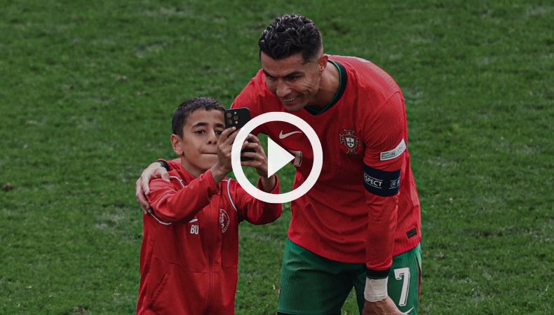 Gracias al encuentro de Portugal y Turquía, se registró un tremendo momento entre Cristiano Ronaldo y un aficionado, el cual se metió al terreno de juego para obtener una foto con el astro portugués.