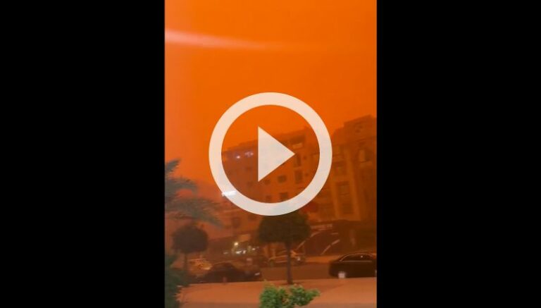 En videos divulgados por medios internacionales se muestra el momento en que los usuarios trataban de resguardarse del fenómeno natural, que asombró a muchos, por crearse una enorme nube roja o anaranjada.