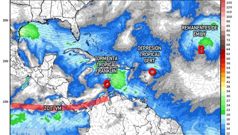 El Instituto Nacional de Meteorología e Hidrología (Inameh), detalla que el paso de la tormenta Franklin en Venezuela ocasionará lluvias de moderadas a fuertes.