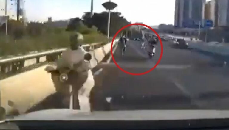 Como se puede observar en el metraje, el conductor, tras perder el control, invadió el carril contrario y se estrelló contra varios motociclistas y automóviles que circulaban en dirección opuesta. También, se escuchan los gritos de angustia por parte del sujeto.