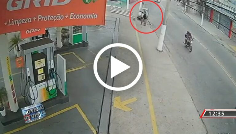 Una cámara de seguridad de una gasolinera captó el momento justo donde una pareja camina tranquilamente en la acera del lugar, para su marcha en la esquina y se da un beso. De pronto, y de manera inesperada (y ellos sin percatarse por el momento que estaban viviendo) no logran darse cuenta que un vehículo se acercaba junto a ellos a gran velocidad.